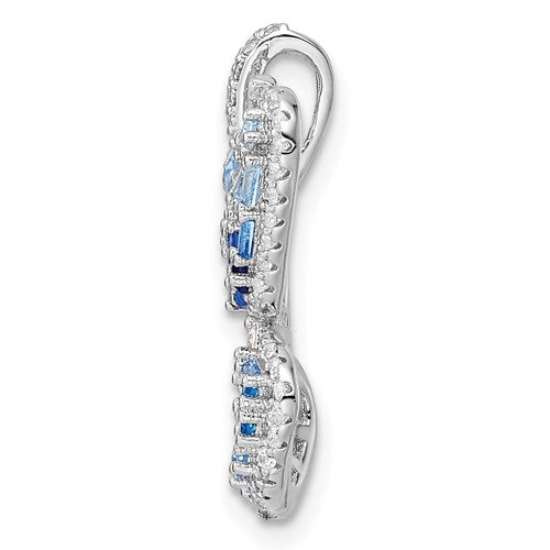 Sterling Silver Blue and White Cz Butterfly Pendant