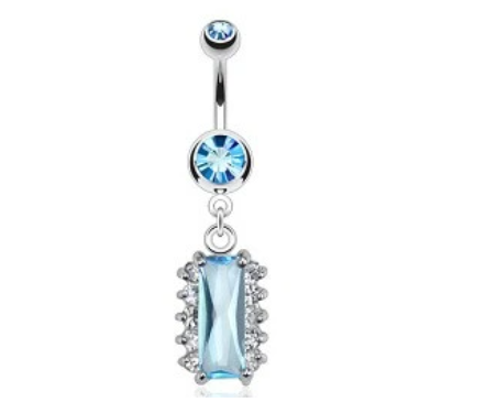Surgical Steel Blue Cubic Zirconia Belly Button Ring( Naval Piercing)