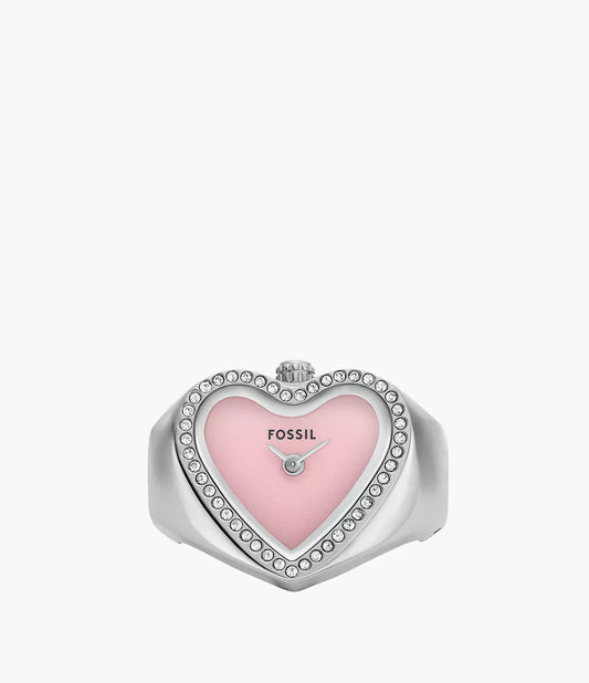 FOSSIL TWO-HAND SILVER-TONE HEART WATCH RING-ES5408