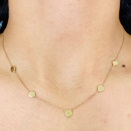 10K White and yellowgold Diamond Cut Beaded Drop necklace