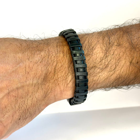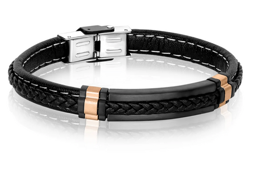 Italgem Stainless Steel Black Matt Leather Bracelet
