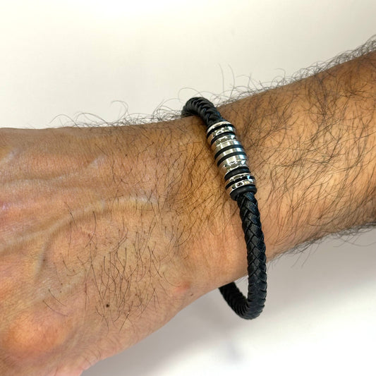 Italgem Stainless Steel Grey and Black Leather Bracelet