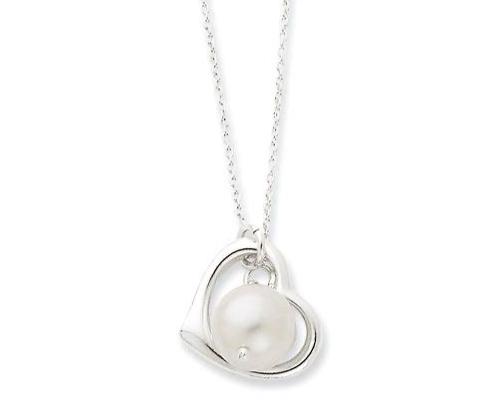 Sterling Silver Rhodium-plated 7-8mm Pearl Necklace with Cz