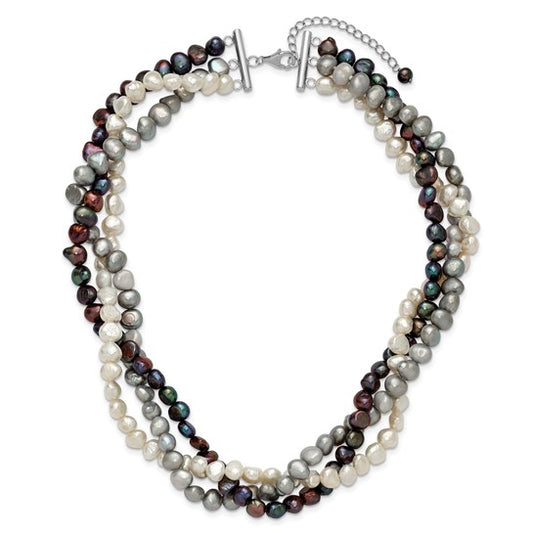 Sterling Silver Rhodium Plated White/Black/Silver FWC Pearl Necklace