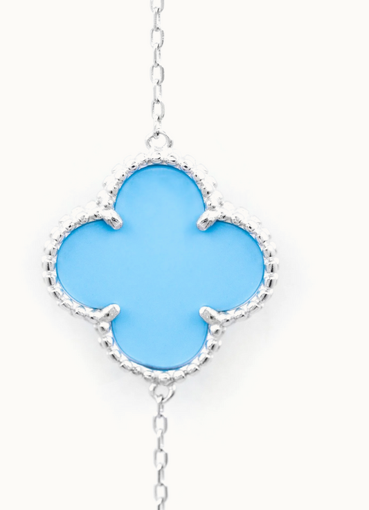 Sterling Silver Mother of Pearl and Turquoise Four Leave Clover Necklace