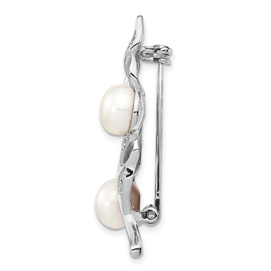Sterling Silver Leaf Brooch with Freshwater and Cubic Zirconia