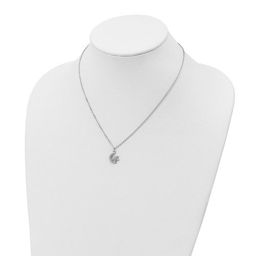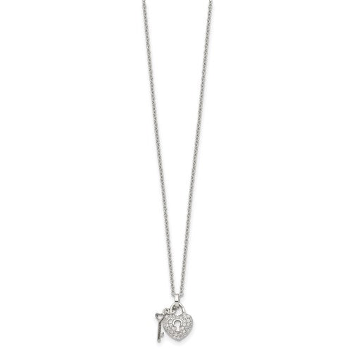 Sterling Silver Rhodium Plated Key and Lock Necklace with Cz