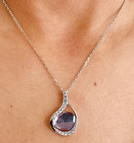 Elle Sterling Silver Amethyst Treasure Necklace with Cubic Zirconia