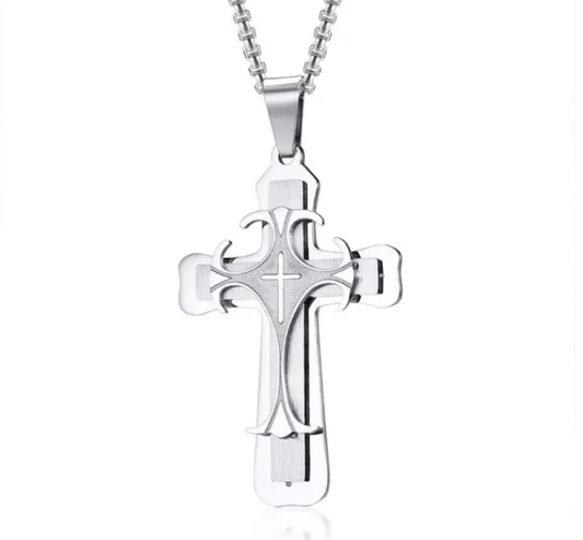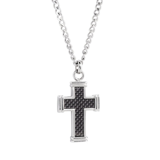 Stainless Steel Two Tone Greek Key Cross Necklace