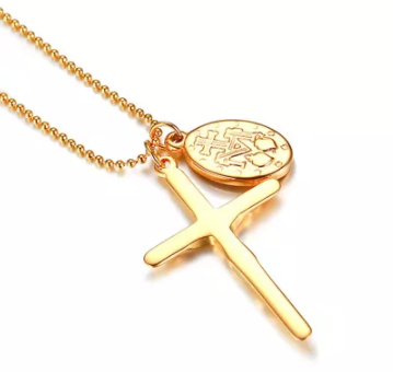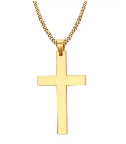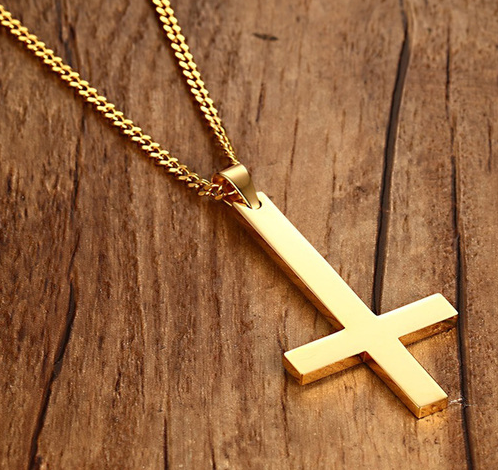 Stainless Steel Gold Iong Inverted Cross Necklace